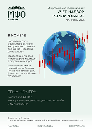 Наш очередной выпуск посвящен широкому кругу вопросов, касающихся юридических и бухгалтерских аспектов деятельности микрофинансовых организаций. Эксперты предлагают ценные рекомендации по правильному ведению бухгалтерского учета и раскрытию сложных ситуаций, таких как оформление льготных займов и отражение сделок РЕПО.