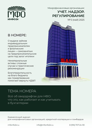 В новом номере журнала вы найдете актуальные статьи и практические рекомендации по различным аспектам бухгалтерского учета, налогообложения и правового регулирования деятельности микрофинансовых организаций и ломбардов.